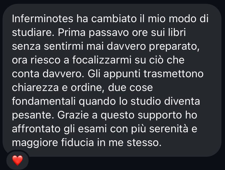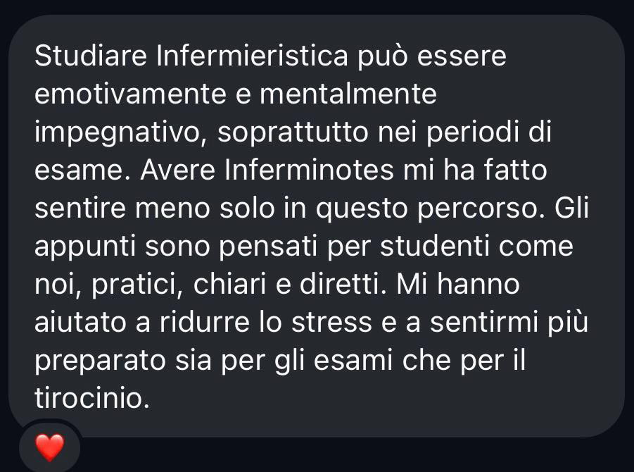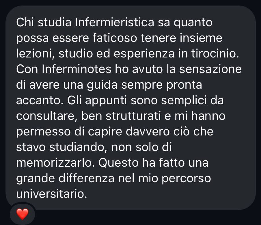 Siamo un team specializzato nell'aiutare studenti e professionisti di Infermieristica a ottimizzare il loro tempo di studio e ad affrontare gli esami con sicurezza. Forniamo appunti strategici, aggiornati e di alta qualità, che coprono tutte le materie di Infermieristica, ideati per rendere la preparazione più efficiente.